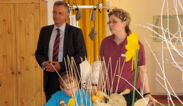 Im weiteren Verlauf wurden Themen wie Bildung, Demokratieverständnis sowie kommunale Finanzausstattung thematisiert. Im Anschluss sah sich der Abgeordnete in Begleitung des Verwaltungsleiters Michael Spallek sowie der Chefärztin Gisa Czieschnek die Reha-Klinik an. Hier werden laut Chefärztin Kinder und Jugendliche im Alter von 0-28 mit schweren Schädel-Hirn-Traumata behandelt.