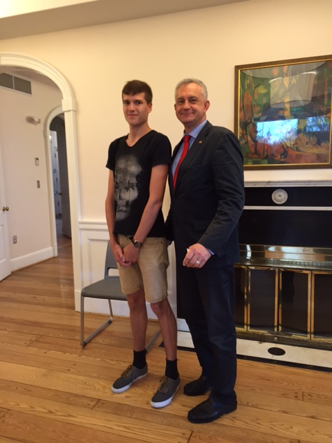 In der deutschen Botschaft in Washington traf er bei einem offiziellen Mittagessen auf Kjell Ratajczak aus Klettbach. Lemme selbst hatte den Jugendlichen aus dem Weimarer Land aus mehreren Bewerberinnen und Bewerbern ausgewählt. „Es war ein schöner Zufall, im Rahmen der Delegationsreise noch einmal auf Kjell zu treffen. Wir hatten uns ja bereits bei einem Bewerbungsgespräch und kurz vor dem Abflug von Kjell in Erfurt kennen gelernt.“ Der Schüler ist seit Sommer 2014 für einen einjährigen Schüleraustausch in den USA.