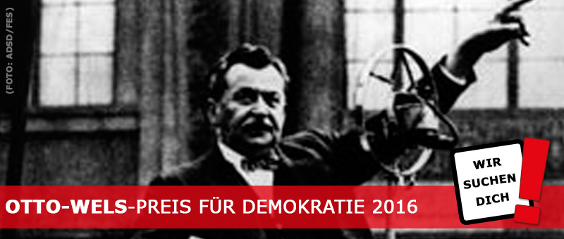 Mit dem Otto-Wels-Preis für Demokratie 2016 zeichnet die SPD-Bundestagsfraktion junge Menschen aus, die sich in kreativer Weise mit der Zukunft der europäischen Idee und den Gefahren von Nationalismus und Rechtsextremismus auseinandersetzen.