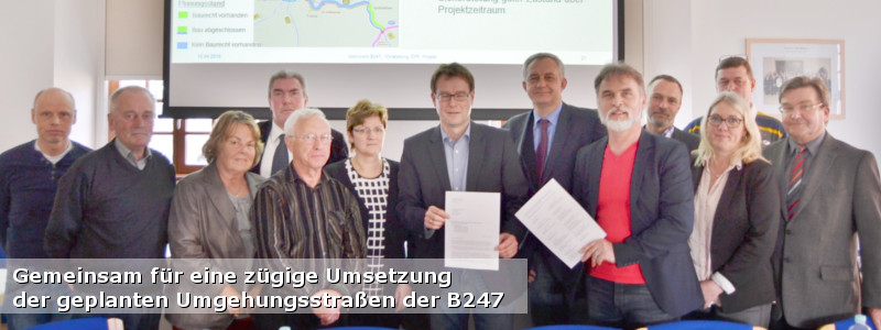 Gemeinsam mit Landrat Harald Zanker, meinen Kolleginnen und Kollegen aus dem Bundestag und dem Thüringer Landtag, mit Mühlhausens Oberbürgermeister Dr. Johannes Bruns, weiteren Bürgermeisterinnen und Bürgermeistern der an der B247 liegenden Städten und Gemeinden habe ich eine Stellungnahme zum Bauvorhaben der B247 im Bundesverkehrswegeplan erarbeitet und unterzeichnet.